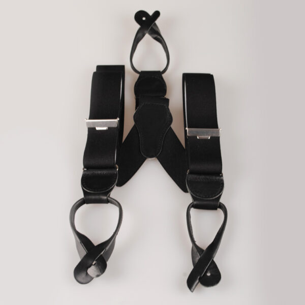 Buksesele til bunaden med svart lær og svart strikk. Leveres i eske.