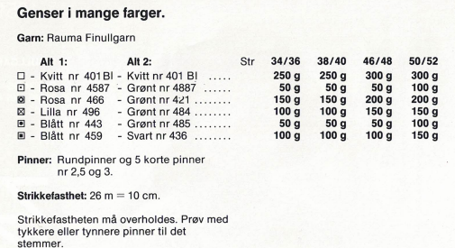 Enkeltmønster til nr. 1051 fra Rauma. Oppskrift på genser i mange farger. I vårt strikkeskatt-prosjekt er det strikket kofte istedenfor genser.