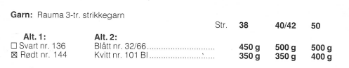 Pinner:Oppskriften sier 2,5 og 3,5. I genseren på bildene er det brukt 3 og 4 mm.